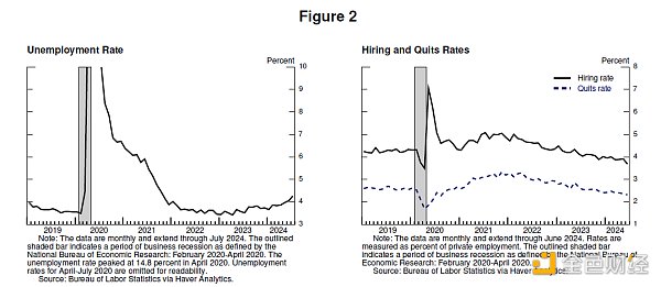 2022年夏天成為了通脹的頂峰。兩年內通脹率從峰值下降了4.5個百分點,這一過程中失業率依然保持在低位,這是一個受歡迎且歷史上不常見的結果。為什么通脹下降了,而失業率沒有顯著上升?