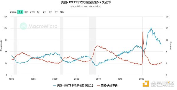 圖表:JOTS非農(nóng)職位空缺數(shù)連續(xù)下降